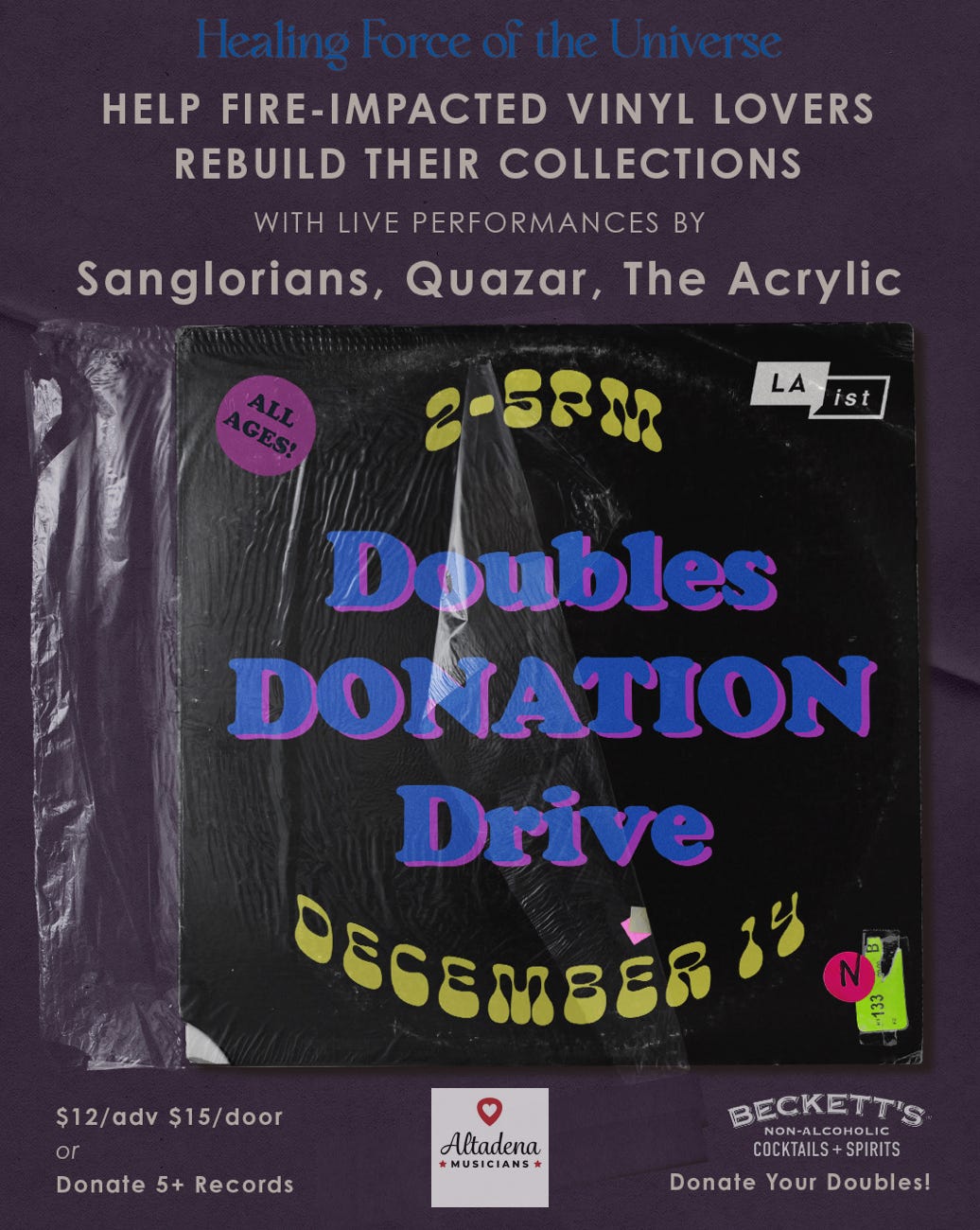 Then a friend of a friend mails me an album from England, my daughter’s bestie gives us a stack of her vinyl doubles, an artist offers to replace their albums for free, or Altadena Musicians puts together a vinyl library to help fire-impacted collectors start rebuilding their collections.